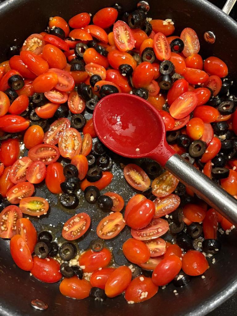 Yes, tomatoes can be overcooked! If they cook too long, they turn mushy and lose their fresh texture. Keep an eye on them — you want them softened and juicy, not broken down into sauce. The goal is tender, not mushy.